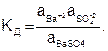 Активность твердого сульфата бария есть величина постоянная, а, следовательно, произведение КДаВаSO4 тоже является при данной температуре константой. Отсюда следует, что произведение активностей ионов Ва+2 и SO4-2 так же представляет собой постоянную величину, называемую произведением растворимости (ПР):