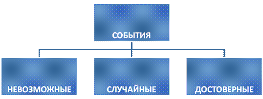 Комментарий. События бывают: достоверные (всегда происходят при создании комплекса условий S), невозможные (никогда не происходят при создании комплекса условий S) и случайные.