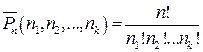 Пусть имеется множество, состоящее из n элементов, причем среди них n1 элементов 1-го типа; n2 элементов 2-го типа и т.д., nk элементов k-гo типа, причем nl+n2+...+nk =n. Число перестановок с повторениями из n элементов обозначают