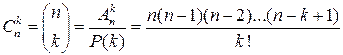 (от французского слова combinaison, что и означает сочетание) и вычисляют по формуле: