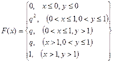 F(x) = P{X=0,Y=0}+ P{X=1,Y=0}= q2 + pq = q(p+q)=q. Аналогично, в случае