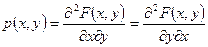 Двойной интеграл можно записать в виде повторных (внешний по x, внутренний по y и наоборот). Если предполагать непрерывность плотности по x и y, то, дифференцируя по переменным верхним пределам, получим