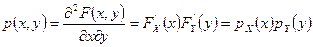 Если случайные величины непрерывны, то, дифференцируя это соотношение по x, y, получим