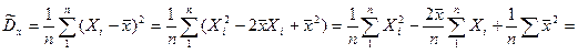 Оценку (5.2.8) принято называть выборочной дисперсией. Проверим ее на состоятельность и несмещенность. Преобразуем выражение (5.2.8) к другому виду: