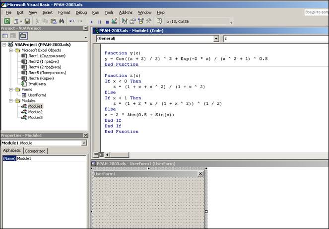 Начнем знакомиться со средствами визуализации разработки проектов в VBA. Таковым является Интегрированная Среда Разработки Приложений. Чтобы попасть в эту среду надо выбрать в пункте меню Сервис Þ Макрос Þ Редактор VBA или нажать одновременно клавиши ALT и F11.
