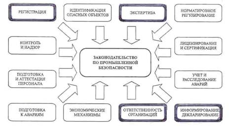 Это законодательство занимает определенное место среди таких отраслей права, как экологическая и пожарная безопасность, законодательство о санитарно эпидемиологическом благополучии населения, законодательство по охране труда, защите населения и территорий от чрезвычайных ситуаций. За исключением промышленной безопасности, все перечисленные отрасли права