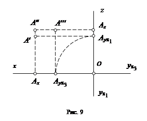 – фронтальная проекция А ¢¢ определяется координатами xА = | ОАx |, zА = | ОАz |, А ¢¢ = (АxА ¢¢ ^ x) Ç (АzА ¢¢ ^ z);