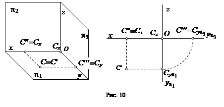 2) точки частного положения, лежащие в плоскостях проекций p1, p2, p3, на осях проекций x, y, z или в начале координат.