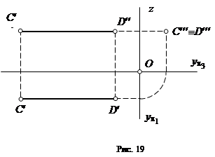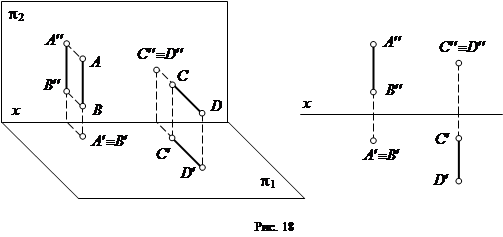 2) Фронтально-проецирующая прямая - прямая, перпендикулярная плоскости p2 (прямая CD на рис. 18).