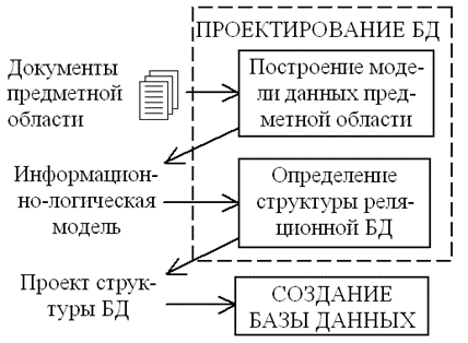 Основные этапы проектирования БД показаны на рисунке.