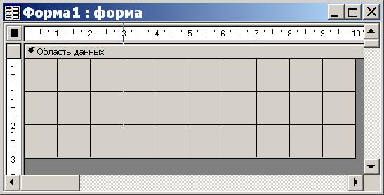 После выбора режима конструктора в окне "Новая форма" требуется задать таблицу — источник данных для формы. После этого открывается окно конструктора форм, показанное на рисунке.