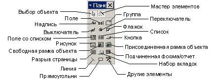 ("Панель элементов") на панели форматирования окна Access. Панель элементов имеет вид, показанный на рисунке.