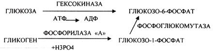 Окисление глюкозы и глюкозного остатка гликогена в тканях отличается начальных стадиях превращения, до образования глюкозо-6-фосфата. Дальнейшее окисление с этого этапа в тканях как в АНА-, так и в АЭРОБНЫХ условиях полностью совпадает до стадии образования ПИРУВАТА.