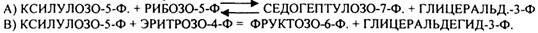 А) СЕДОГЕПТУЛОЗО-7-Ф + ГЛИЦЕРАЛЬД-3-Ф = ФРУКТОЗО-6-Ф + ЭРИТРОЗО-4-Ф.