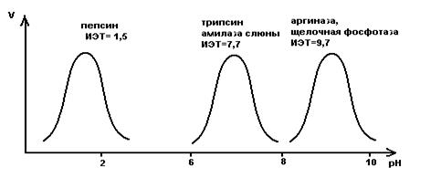 Внутриклеточные ферменты обычно имеют оптимум рН соответствующий нейтральной среде (рН =7) близкой к нормальному значению рН для жидкостей организма. Есть ферменты оптимум рН которых находится в сильнокислой и сильнощелочной среде