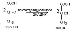 Электроны, пришедшие сначала от глицеральдегид-3-фосфат к НАД+, переносятся в форме НАДН на пируват. Восстановление НАД катализируется ЛДГ.