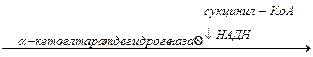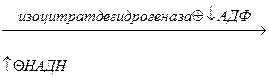 Вторая регуляторная реакция – это реакция, катализируемая изоцитрат-дегидрогеназой. Фермент аллостерически активируется АДФ, НАДН ингибирует изоцитрат-дегидрогеназу: