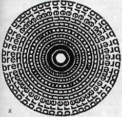 Каллиграфический или шрифтовой орнамент (рис. 41, д) составляется из отдельных букв или элементов текста, выразительных по своему пластическому рисунку и ритму. Такие стилизованные надписи украшают, например, среднеазиатские мечети, ювелирные украшения.