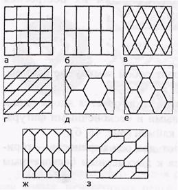 А. А. Нешатаев предлагает восемь различных раппортных фигур (сеток): четыре параллелограмма (квадрат, прямоугольник, ромб, косой параллелограмм, рис. 47, а - г) и четыре шестиугольника (правильный, два вытянутых и косой, рис. 47, д - з).
