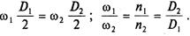 Отношение угловой скорости ведущего колеса к угловой скорости ведомого или частоты вращения ведущего колеса к частоте вращения ведомого называется передаточным отношением: