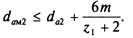 Диаметр вершин зубьев в среднем сечении da2 = d2 + 2т.