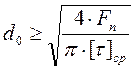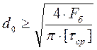 По этой нагрузке определяется диаметр стержня болта из условия прочности на срез и смятие.