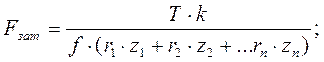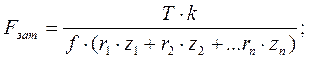 Tf=Fзат∙r1∙f∙z1+Fзат∙r2∙f∙z2+…+Fзат∙rn∙f∙zn≥T∙k