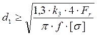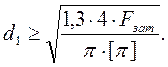 По этой нагрузке определяется внутренний диаметр болта из условия прочности на растяжение с учетом закручивания болта при затяжке