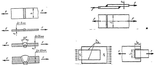 Стыковые швы на прочность рассчитывают по номинальному сечению соединяемых элементов без учета утолщения швов. Для расчета швов используются те же зависимости, что и для целых элементов.