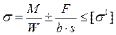 Напряжение от изгибающего момента в плоскости соединяемых элементов и растягивающей (или сжимающей) силы