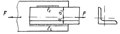Если соединяемая деталь асимметрична, то расчет прочности производят с учетом нагрузки, воспринимаемой каждым швом. Например, к листу приварен уголок, равнодействующая нагрузка проходит через центр тяжести поперечного сечения уголка и распределяется по швам обратно пропорционально плечам al и а2. Соблюдая условие равнопрочности, швы выполняют с различной длиной.;