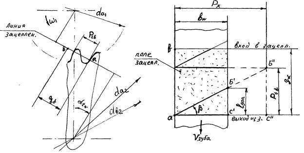 gα - активная часть линии зацепления (ограниченная цилиндрами вершин зубьев);
