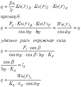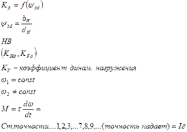 - коэффициент неравномерного распределения нагрузки по длине зуба