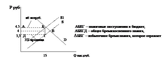 Бремя налогов представляет собой общую сумму платежей, которая, в конечном счете, в той или иной форме возвращается налогоплательщикам. Но есть избыточное налоговое бремя. Суть в том, что большинство налогов создают общее налоговое бремя на экономику, превышающее налоговые поступления. Избыточное бремя, которое выражает падение объема производства ниже оптимального уровня, это означает одновременно потерю для общества чистой выручки. Величина избыточного бремени в значительной степени зависит от эластичности спроса и предложения и, если продолжить анализ, то придем к следующим выводам: