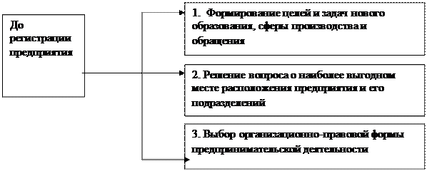 Первый этап - появление идеи об организации бизнеса, формулирование цели и задач, а также решение вопроса о возможном использовании предоставляемых законодателем налоговых льгот (например, для малых предприятий, осуществляющих деятельность в сфере материального производства).