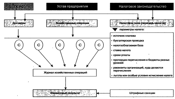 Важный элемент, способствующий проведению налогового планирования на предприятии, -это организация бухгалтерского учета; выбранная форма, методология, содержание и способы ведения. С этих позиций рассматривается общая схема текущего налогового планирования на коммерческих предприятиях (рис. 2), где «С» - различные ситуации с учетом налоговых, договорных и хозяйственных наработок, выполненных специалистами предприятия.