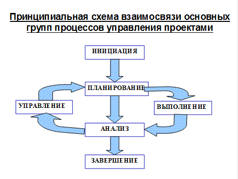 Методика управления проектами выделяет следующие основные группы процессов: