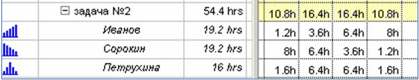При первом назначении ресурсов на задачи, трудозатраты вычисляются и фиксируются, доля от общего объема трудозатрат, выделенная каждому из ресурсов, меняется.