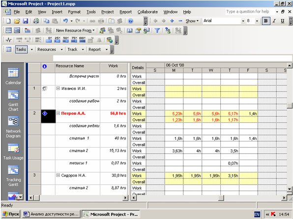 Таким образом, превышение доступности ресурса – это назначение ресурсу в течение определенного периода времени часов работы больше, чем доступно в рамках проекта.