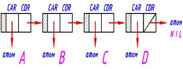 Рис.8.1 Представление простого списка (ABCD) и списка с подсписками
