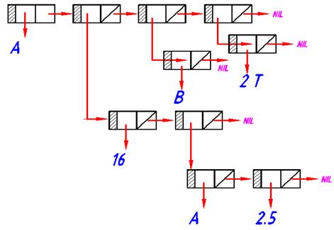 <S-выражение>::= <атом> | (<S-выражение>. <S-выражение>); пара | (<S-выражение>...); списокПо этому правилу S-выражения - это или атомы, или бинарные узлы из пары S-выражений, или списки из S-выражений.