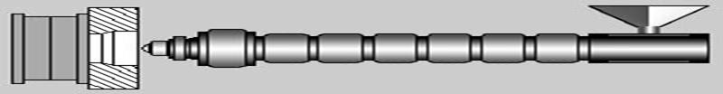 Процесс изготовления труб способом непрерывной экструзии состоит из выдавливания расплава полимера через кольцевой зазор головки машины, образуемый мундштуком и дорном, калибрования трубы по внутреннему или внешнему диаметру с помощью специальной насадки или дорна, окончательного охлаждения трубы в водяной ванне и резки труб.