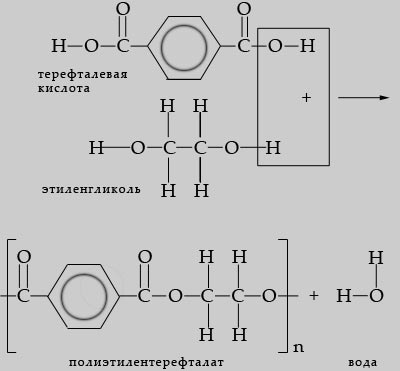Получают полиэтилентерефталат поликонденсацией терефталевой кислоты (бесцветные кристаллы) или ее диметилового эфира с этиленгликолем (жидкость) по периодической или непрерывной схеме в две стадии По технико-экономическим показателям преимущество имеет непрерывный процесс получения полиэтилентерефталата из кислоты и этиленгликоля. Этерификацию кислоты этиленгликолем (молярное соотношение компонентов от 1:1,2 до 1:1,5) проводят при 240-2700С и давлении 0,1-0,2МПа. Полученную смесь бис-(2-гидроксиэтил)терефталата с его олигомерами подвергают поликонденсации в нескольких последовательно расположенных аппаратах, снабженных мешалками, при постепенном повышении температуры от 270 до 3000С и снижении разряжения от 6600 до 66 Па. После завершения процесса расплав полиэтилентерефталата выдавливается из аппарата, охлаждается и гранулируется или направляется на формование волокна. Матирующие агенты (TiO2), красители, инертные наполнители (каолин, тальк), антипирены, термо- и светостабилизаторы и др. добавки вводят во время синтеза или в полученный расплав полиэтилентерефталата. При быстром охлаждении ПЭТФ аморфен и прозрачен, при медленном – кристалличен (до 50%).