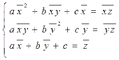 Тогда система нормальных уравнений для вычисления параметров а, в и с будет выглядеть следующим образом: