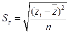 где Sx, Sy, Sz – среднеквадратические отклонения соответственно по х, у и z, рассчитываемые по следующим формулам:
