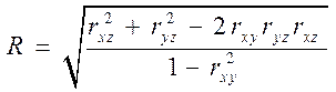 Для измерения степени тесноты связи между изменениями результативного признака z и изменениями значений факторных признаков х и у определяют совокупный коэффициент корреляции R: