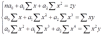 Если связь между признаками криволинейная и описывается уравнением параболы второго порядка, то система нормальных уравнений приобретает следующий вид: