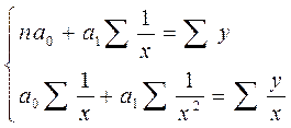 А система нормальных уравнений для нахождения параметров гиперболы имеет следующий вид: