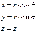 | Цилиндрические (Ц) и декартовые (Д) координаты связаны следующим образом: |