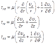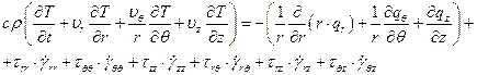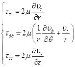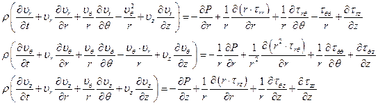 В цилиндрических координатах основные уравнения, выражающие законы сохранения имеют вид: